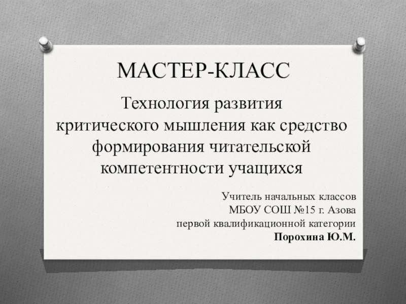 критического мышления как средство формирования читательской