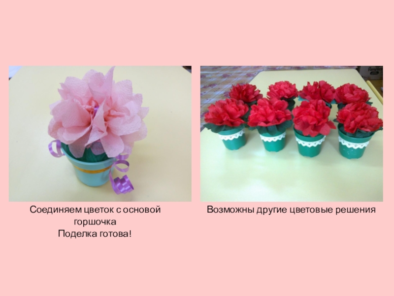 Обматываем сетку гофрированной бумагой и вставляем в горшочек