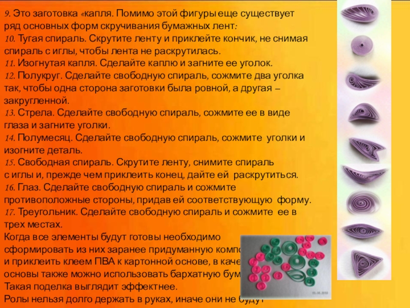 Презентация «Удивительный мир квиллинга». Поэтапное описание работы.