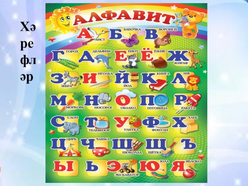 -Безнең алфавитта нәрсәләр урнашкан? ( хәрефләр)