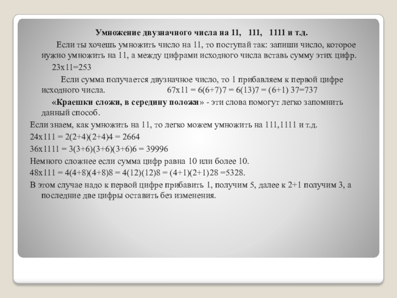 Слайд 3Умножение двузначного числа на 11, 111, 1111 и т.д.