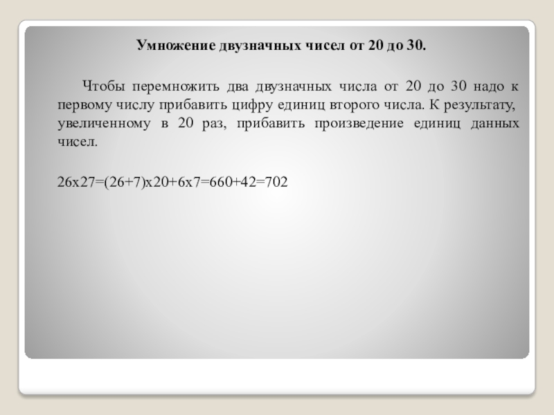 Слайд 9Умножение двузначных чисел от 20 до 30.