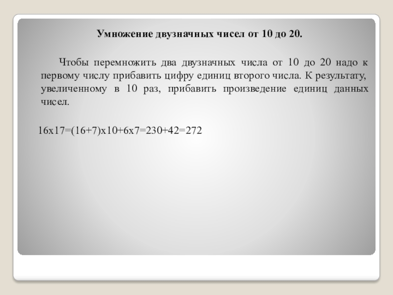 Слайд 8Умножение двузначных чисел от 10 до 20.