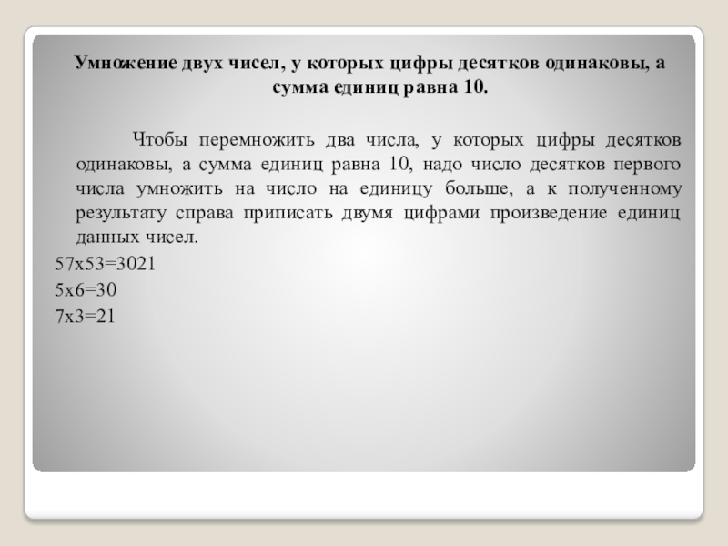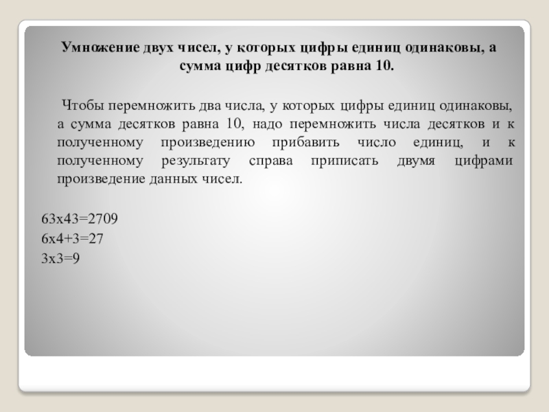 Слайд 10Умножение двух чисел, у которых цифры десятков одинаковы, а сумма единиц