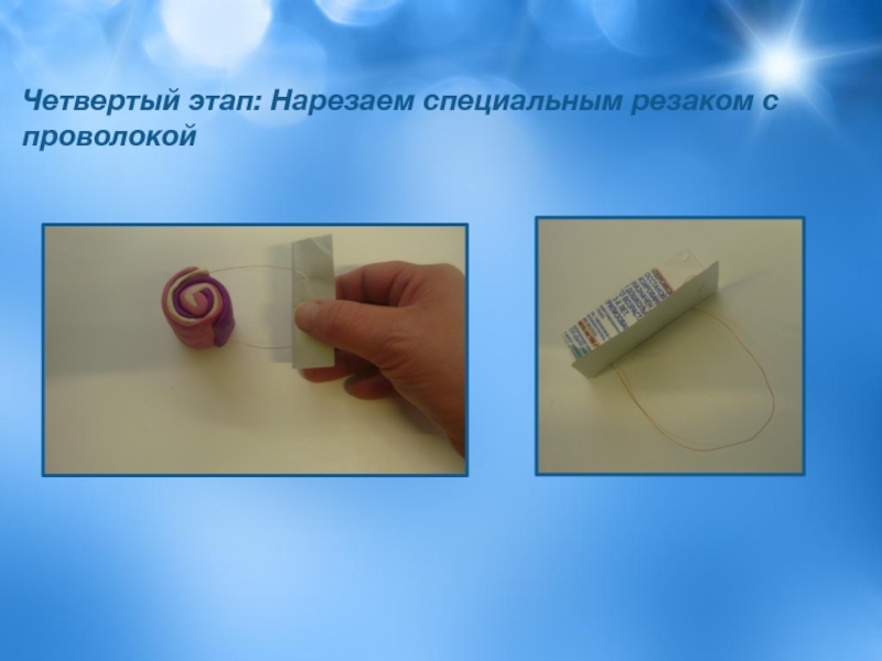 Слайд 5Четвертый этап: Нарезаем специальным резаком с проволокой