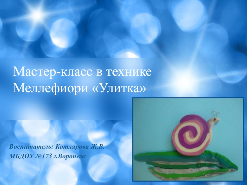 Воспитатель: Котлярова Ж.В.МБДОУ №173 г.ВоронежМастер-класс в технике Меллефиори «Улитка»