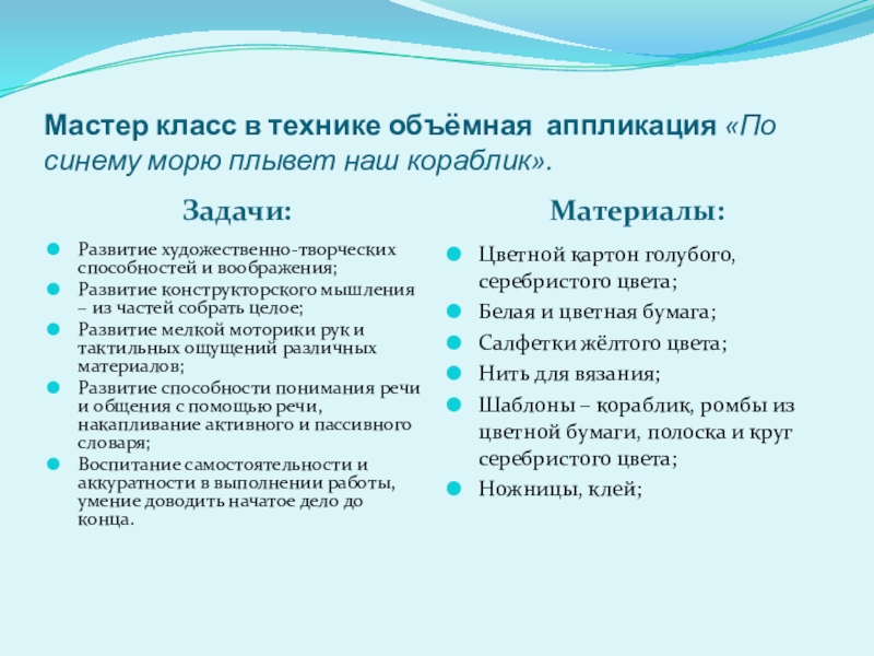 Воспитание самостоятельности и аккуратности в выполнении работы, умение доводить начатое дело до конца.