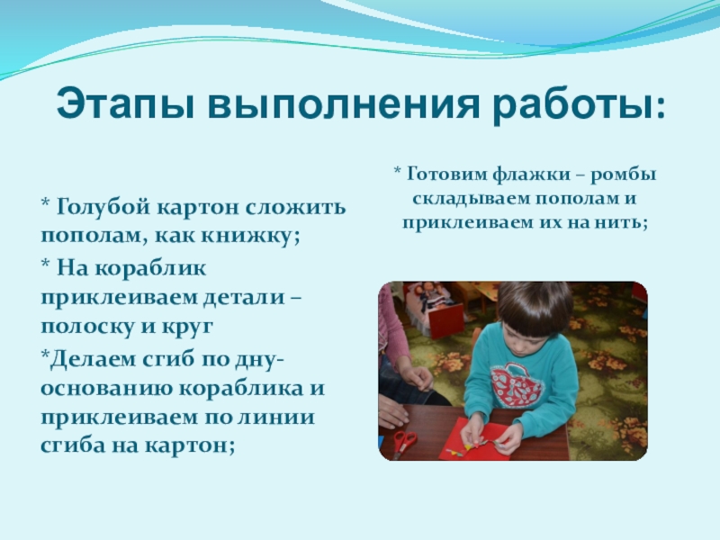* Готовим флажки – ромбы складываем пополам и приклеиваем их на нить;