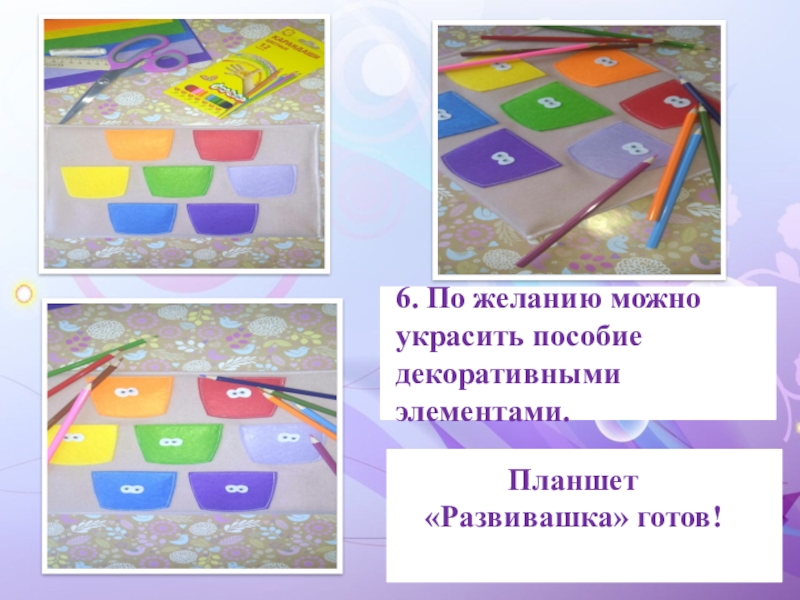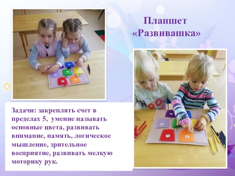 6. Совершенствовать движения рук, произвольное внимание, логическое мышление, зрительное и слуховое восприятие, память детей.