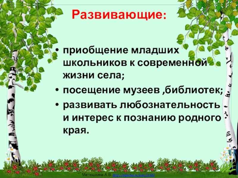 развитие умения видеть и понимать красоту окружающей жизни, желание узнать больше об особенностях своего края, его природы, истории.