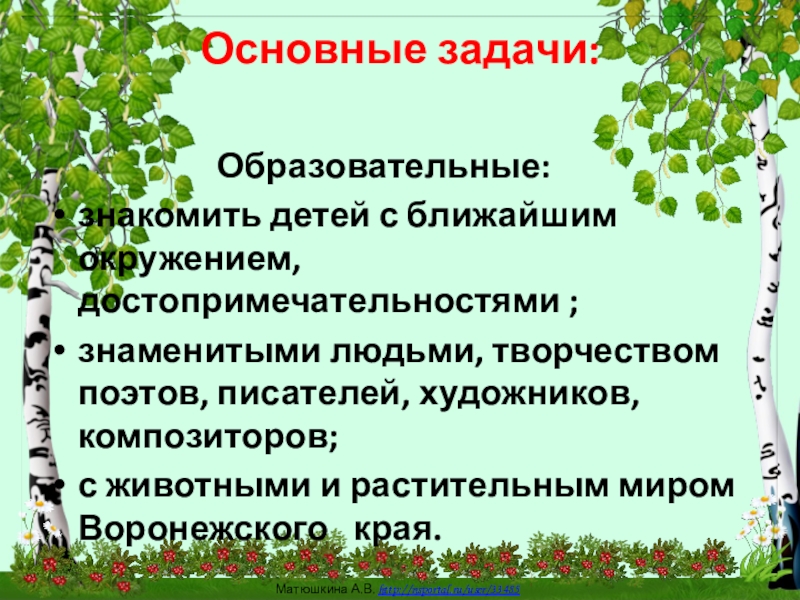 знакомить детей с ближайшим окружением, достопримечательностями ;