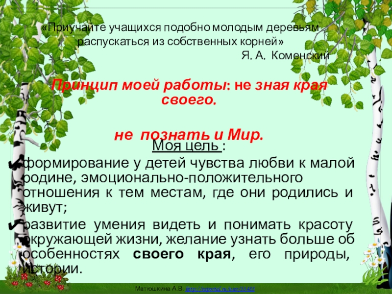 Слайд 5«Приучайте учащихся подобно молодым деревьям распускаться из собственных корней»