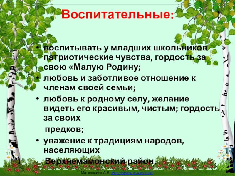 воспитывать у младших школьников патриотические чувства, гордость за свою «Малую Родину;