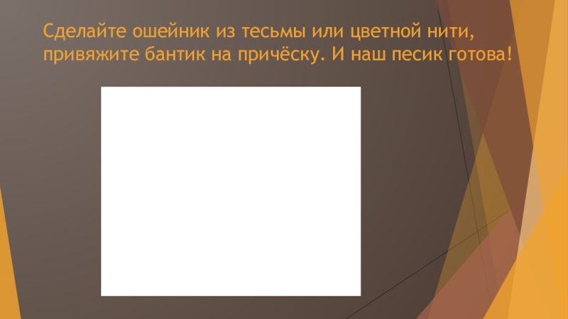 Слайд 14Сделайте ошейник из тесьмы или цветной нити, привяжите бантик на причёску.