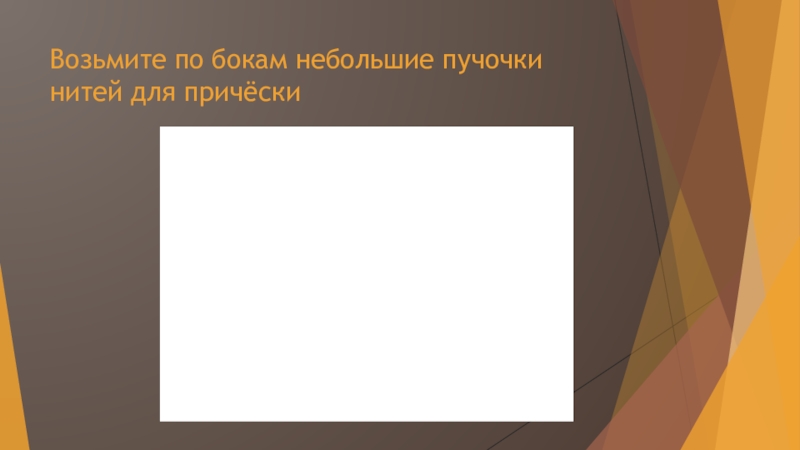 Слайд 6Возьмите по бокам небольшие пучочки нитей для причёски