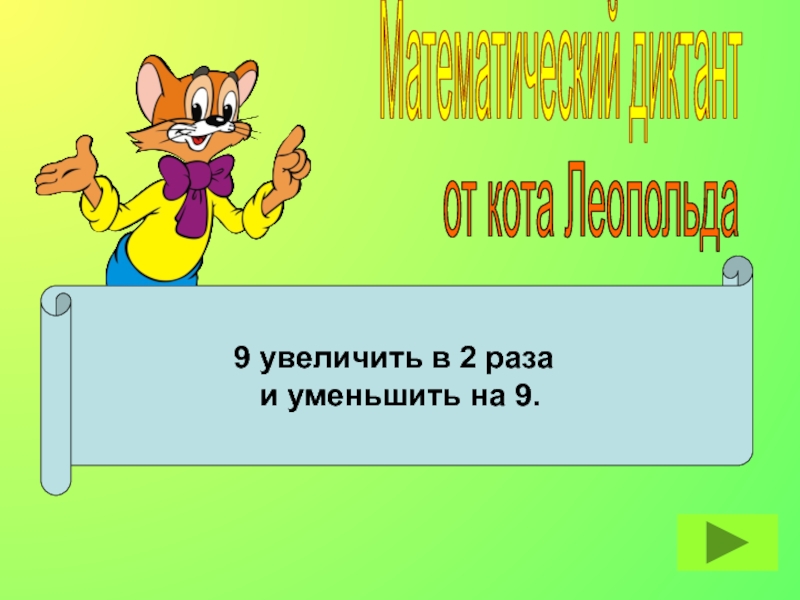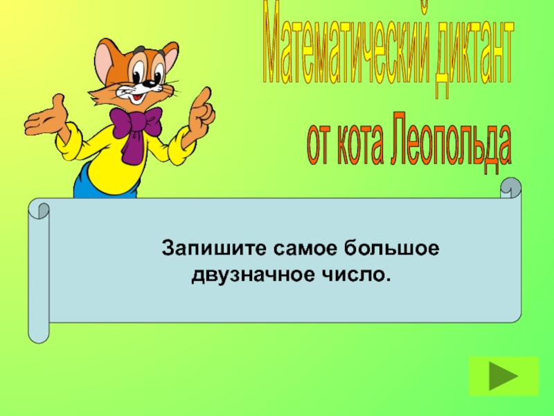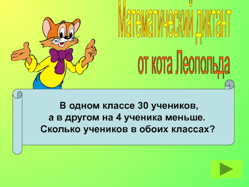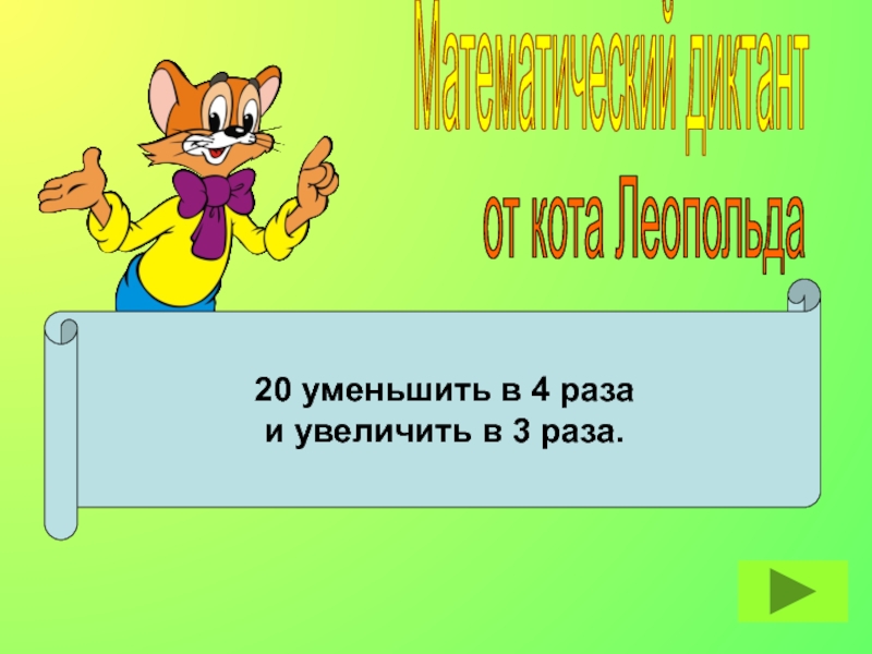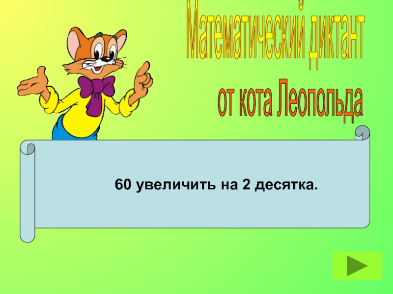 60 увеличить на 2 десятка.Математический диктантот кота Леопольда