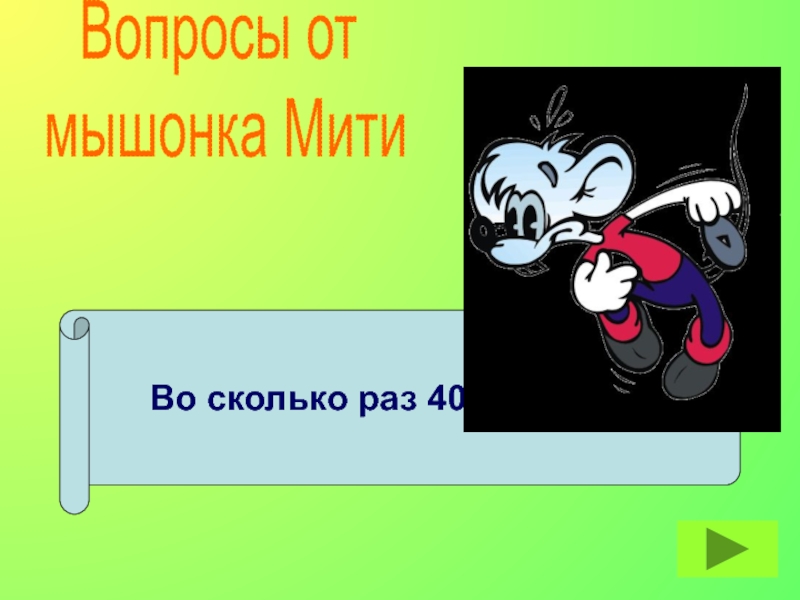 Во сколько раз 40 больше 5?Вопросы от мышонка Мити