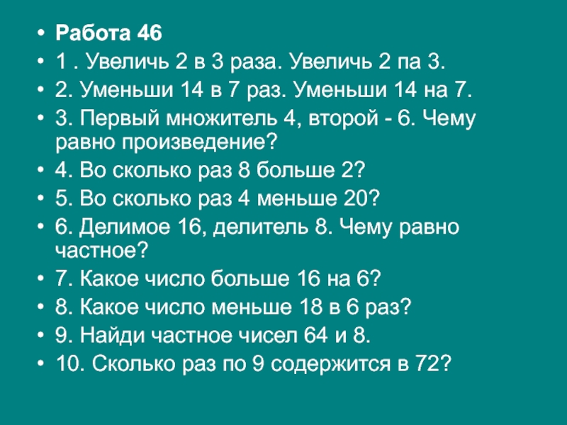 1 . Увеличь 2 в 3 раза. Увеличь 2 па