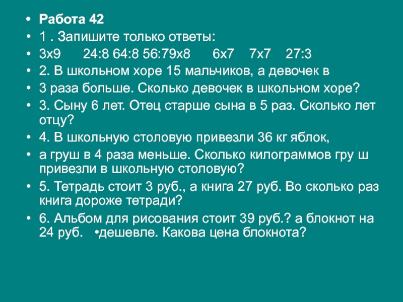 6.Запиши число, которое больше 6 в 7 раз