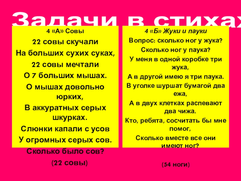 А в другой имею я три паука.
