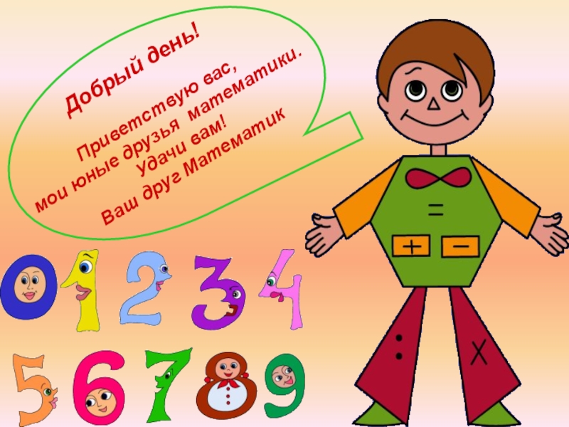 Добрый день!Приветствую вас, мои юные друзья математики. Удачи вам! Ваш друг Математик