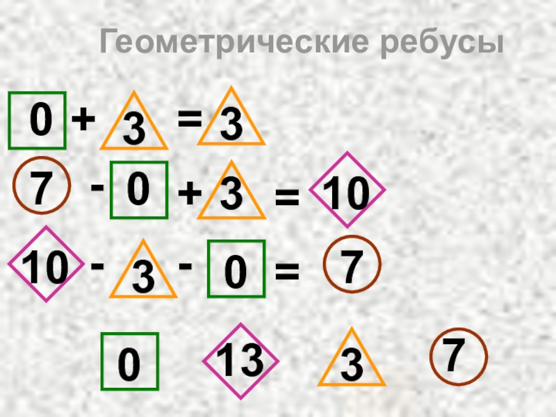 + = - + - - = = 013370337031010307Геометрические ребусы