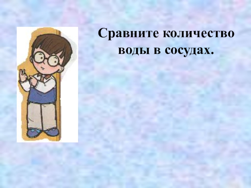 Слайд 3Сравните количество воды в сосудах.