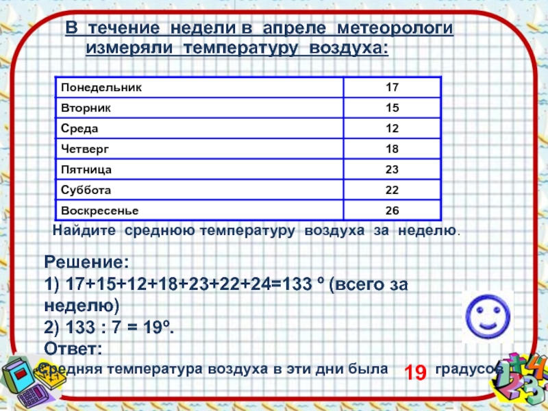 Найдите среднюю температуру воздуха за неделю.