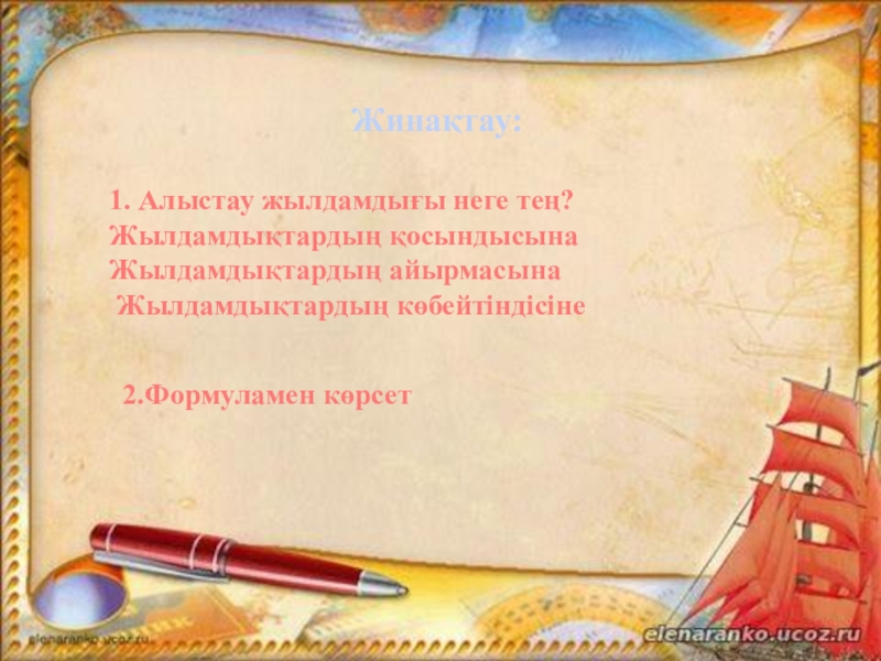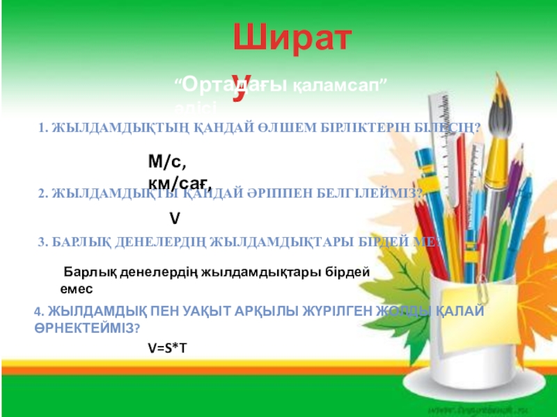 4. Жылдамдық пен уақыт арқылы жүрілген жолды қалай өрнектейміз?