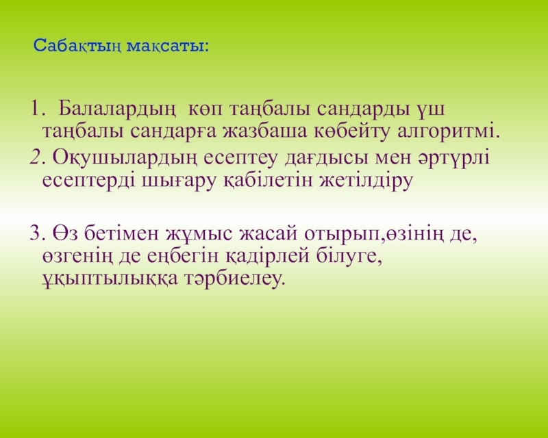 2. Оқушылардың есептеу дағдысы мен әртүрлі есептерді шығару қабілетін жетілдіру