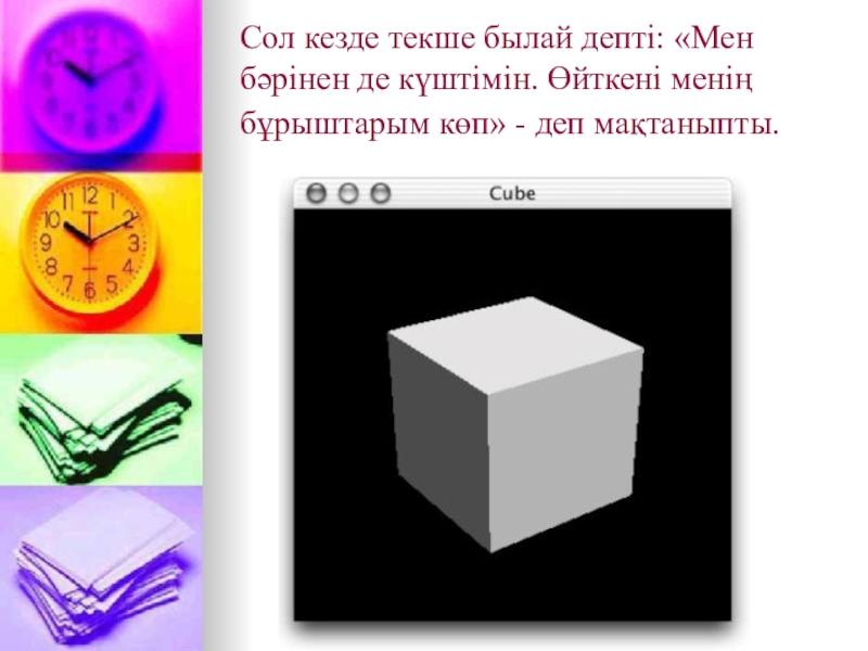 Слайд 7Сол кезде текше былай депті: «Мен бәрінен де күштімін. Өйткені менің
