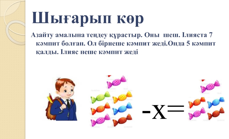 Мақсаты: “Теңдеуді іріктеу арқылы және қосу, азайту