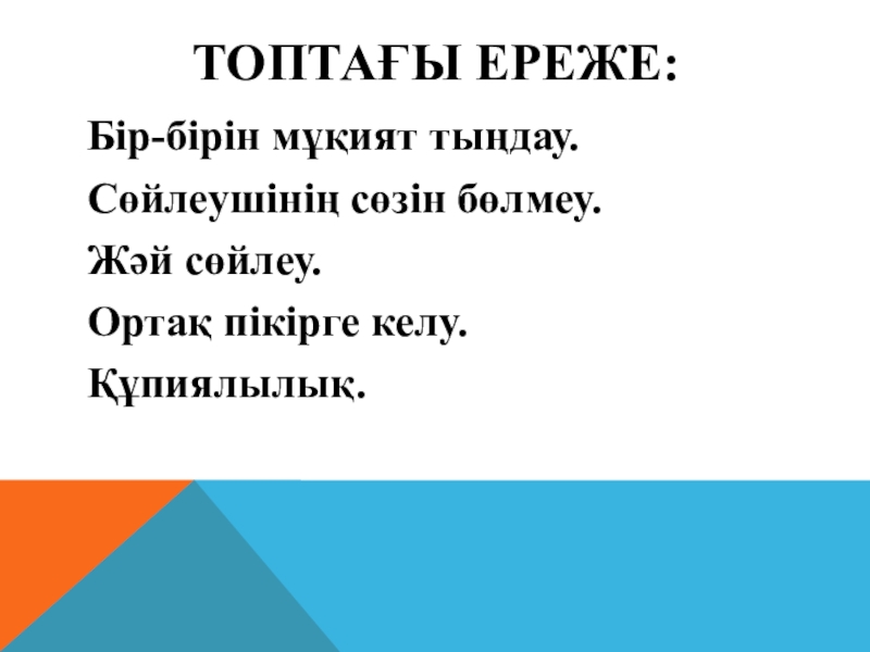 3) Бірін-бірін тыңдауға,ұйымшылдыққа, бірін-бірі сыйлауға,елжандылыққа тәрбиелеу.