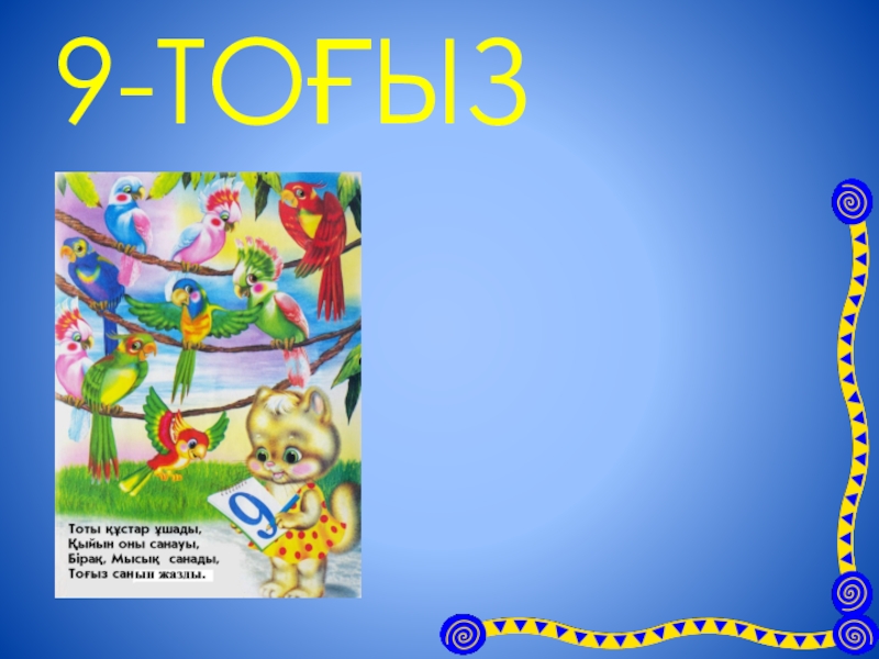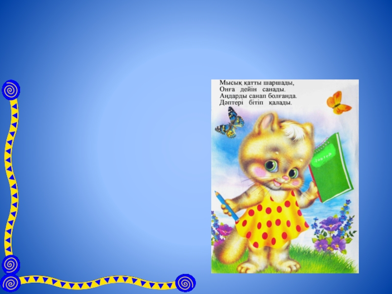 Слайд 2Дәптер, қаламдарыңды алындар. Мысықпен бірге сандарды жазындар