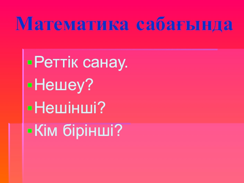 Математика сабағында Реттік санау. Нешеу?Нешінші?Кім бірінші?