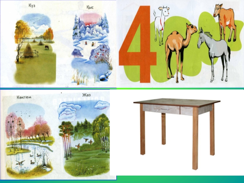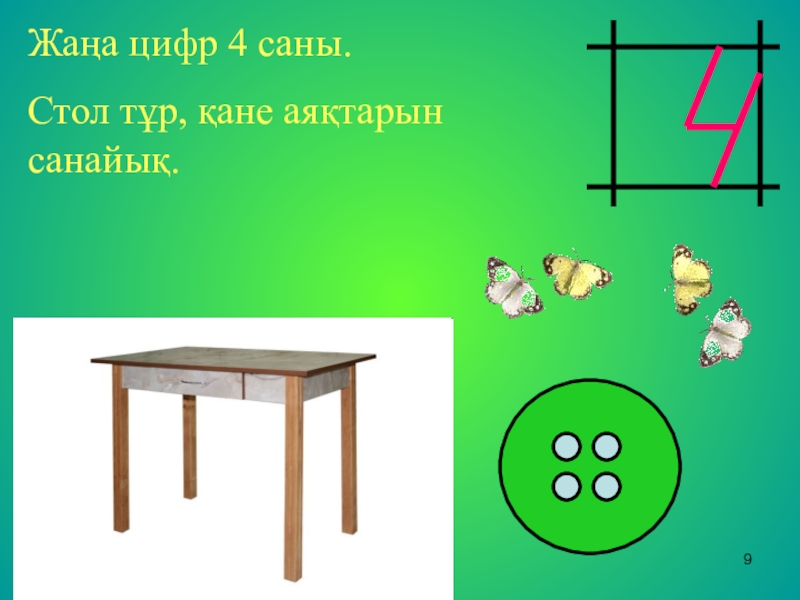Жаңа цифр 4 саны.Стол тұр, қане аяқтарын санайық.9