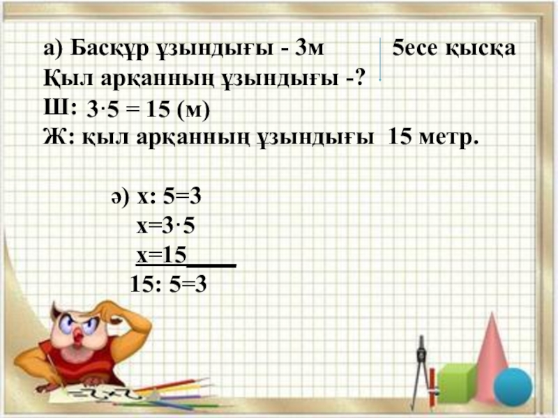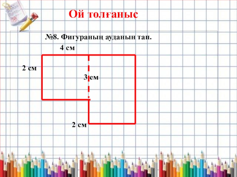 (ұзындығын, енін, биіктігін көбейтеміз) V=a*b*h