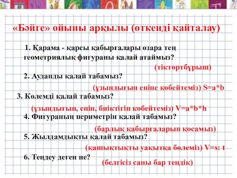 «Бәйге» ойыны арқылы (өткенді қайталау)