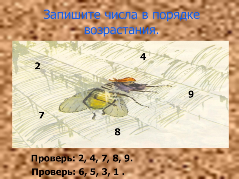 Запишите числа в порядке возрастания.28749Проверь: 2, 4, 7, 8, 9.Проверь: 6, 5, 3, 1 .