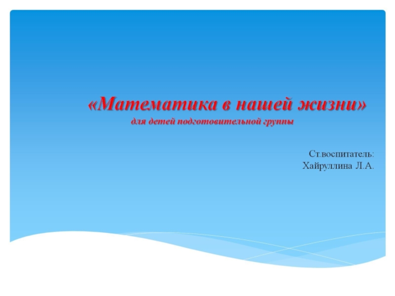 Презентация, доклад на тему Математика в нашей жизни для детей подготовительной группы