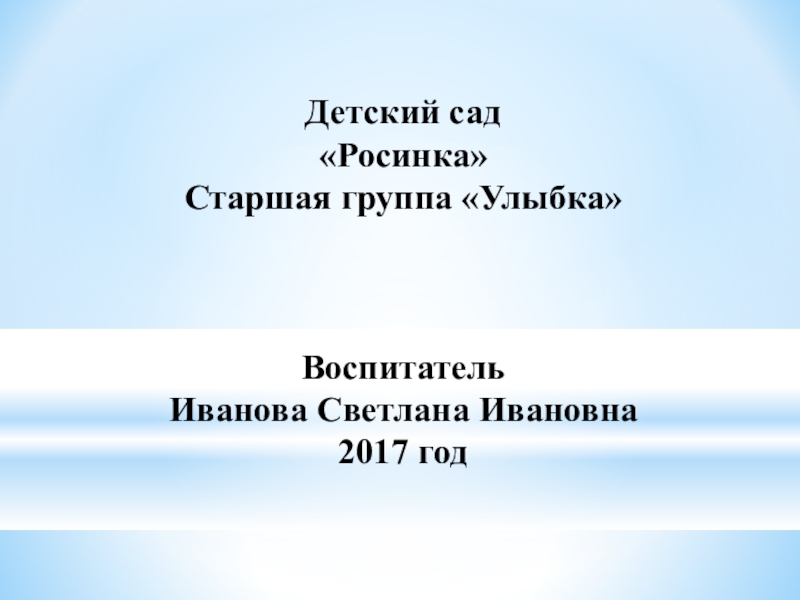 Детский сад «Росинка»Старшая группа «Улыбка»Воспитатель Иванова Светлана Ивановна2017 год