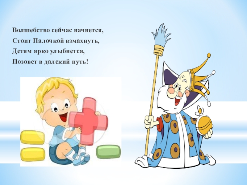 Волшебство сейчас начнется,Стоит Палочкой взмахнуть,Детям ярко улыбнется,Позовет в далекий путь!