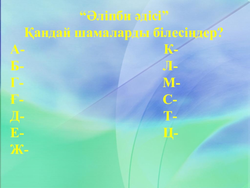 “Әліпби әдісі”Қандай шамаларды білесіңдер?А-