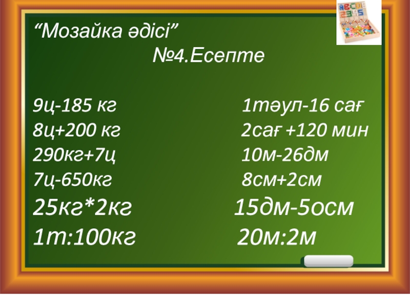 “Мозайка әдісі”  №4.Есепте9ц-185 кг