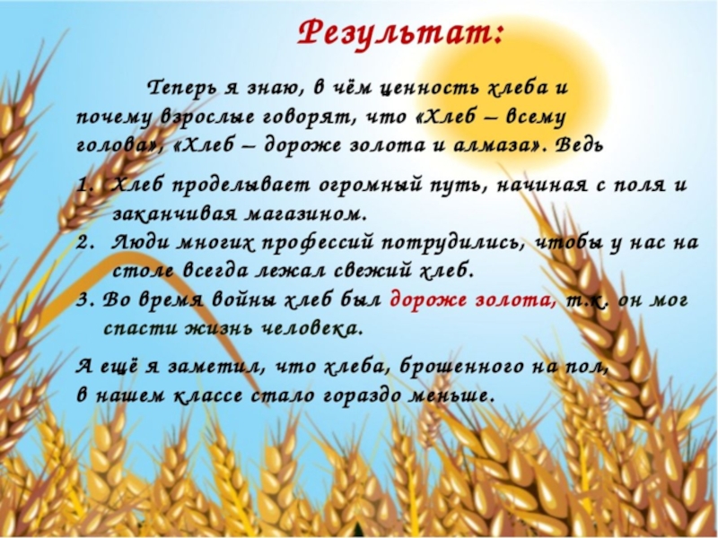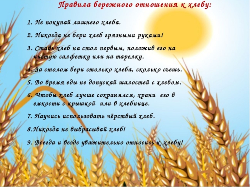Презентация, доклад на тему Материал для начальной школы для внеурочной деятельности о правильном питании и бережном отношении к хлебу