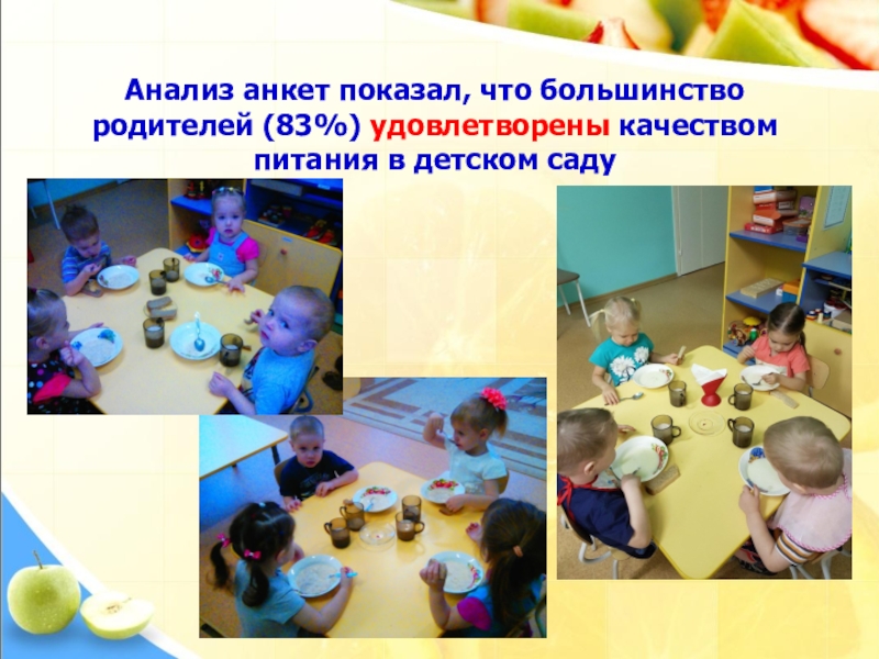 Родителям были заданы вопросы , обобщенные результаты которых представлены ниже