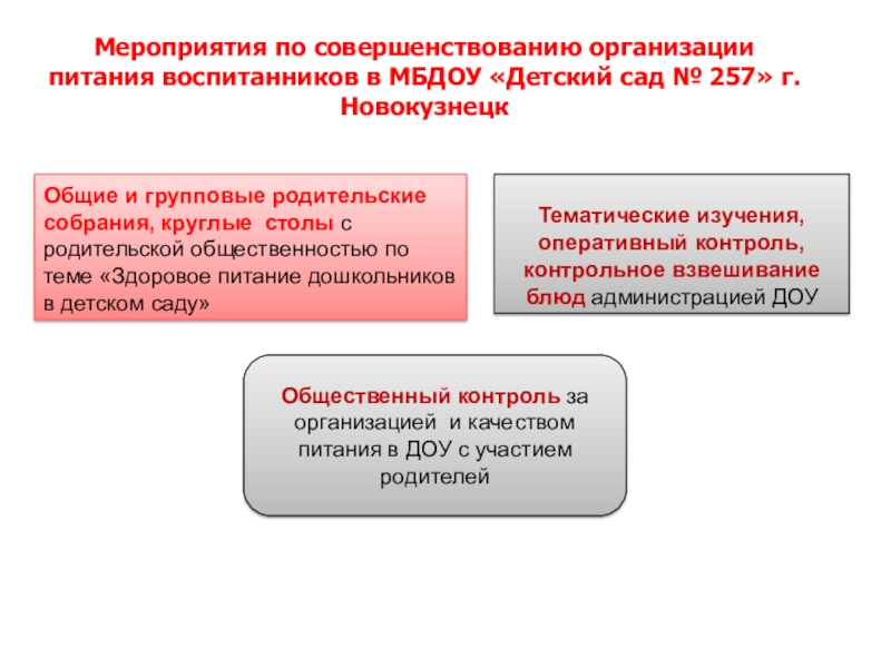 Мероприятия по совершенствованию организации питания воспитанников в МБДОУ «Детский сад № 257» г. Новокузнецк