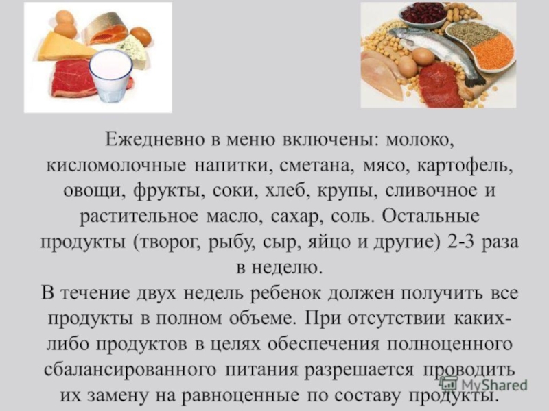 Каждое учреждение вправе внести свои изменения в предлагаемое меню с учетом таблицы замены продуктов и технологических карт из сборников рецептуры блюд для детского питания.