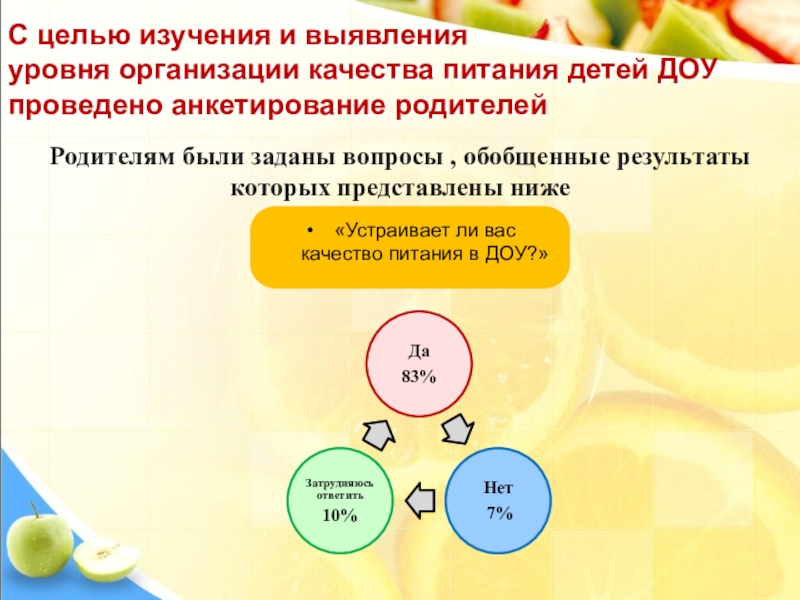 «Устраивает ли вас качество питания в ДОУ?»