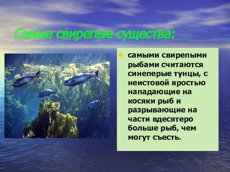 самыми свирепыми рыбами считаются синеперые тунцы, с неистовой